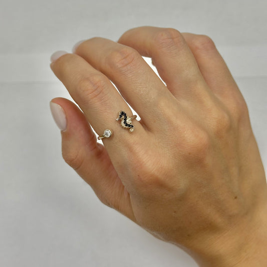 Sidabrinis reg. dydžio žiedas su jūros arkliuku