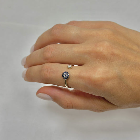 Sidabrinis žiedas su mėlynais ir baltais cirkoniais reg. dydžio