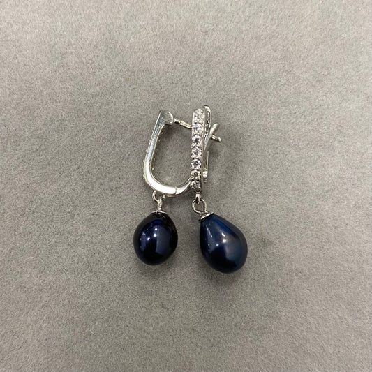 Sidabriniai kabantys auskarai su tamsiuoju perlu