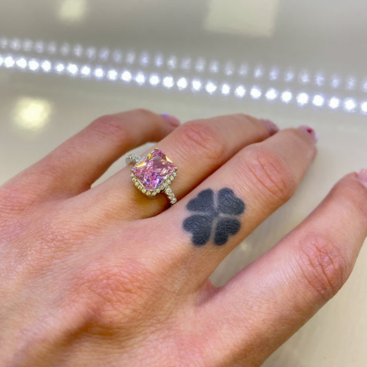 Sidabrinis rodžiuotas žiedas su rožiniu cirkoniu