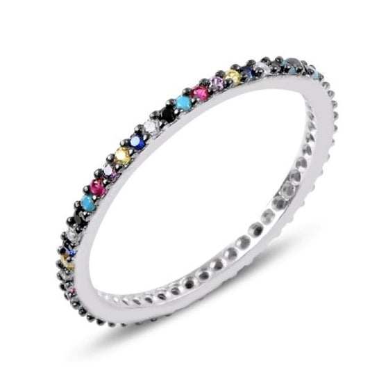 2mm sidabrinis žiedas su spalvotu cirkoniu