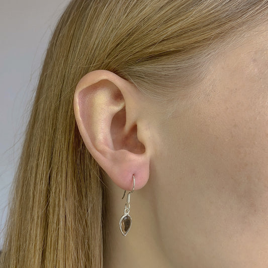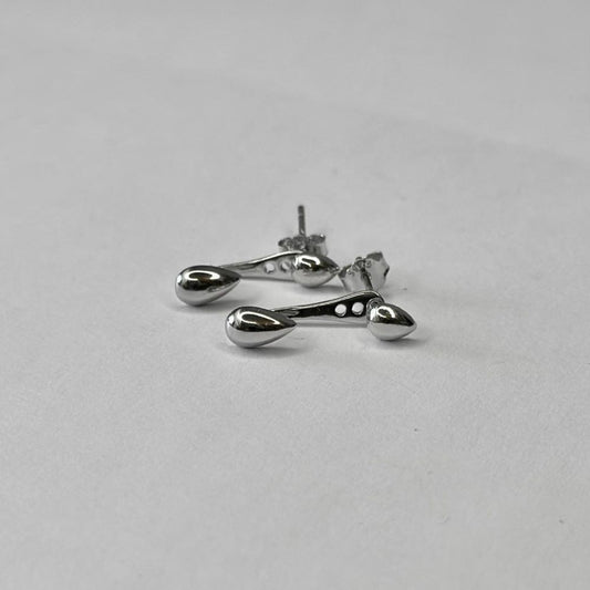 Sidabriniai rodžiuoti lašo formos dviejų dalių auskarai