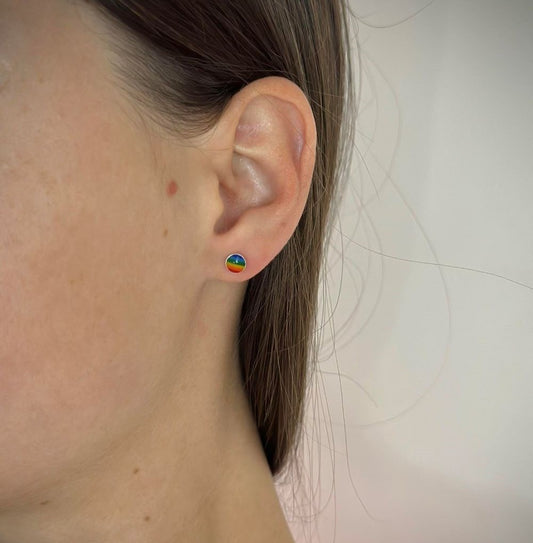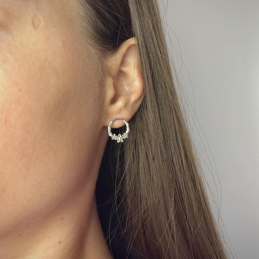 IšparduotaSidabriniai apvalūs auskarai su gėlytėmis