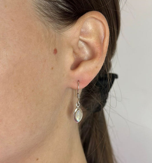 Sidabriniai kabantys auskarai su mėnulio akmeniu