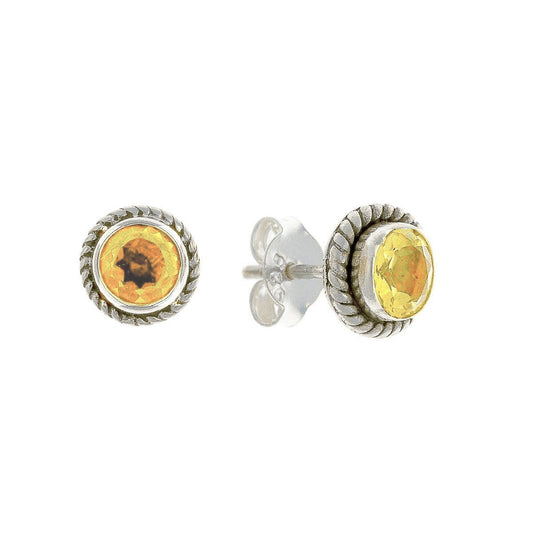 Citrinas ¦ sidabriniai apvalūs auskarai su citrino akmeniu