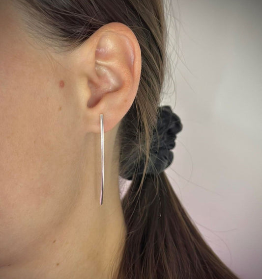 Sidabriniai rodžiuoti kabantys auskarai su grandinėle