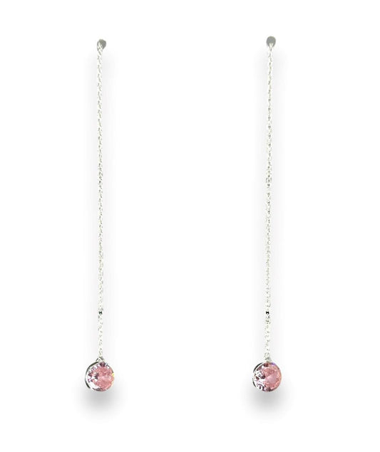Sidabriniai įvairių spalvų auskarai su grandinėle