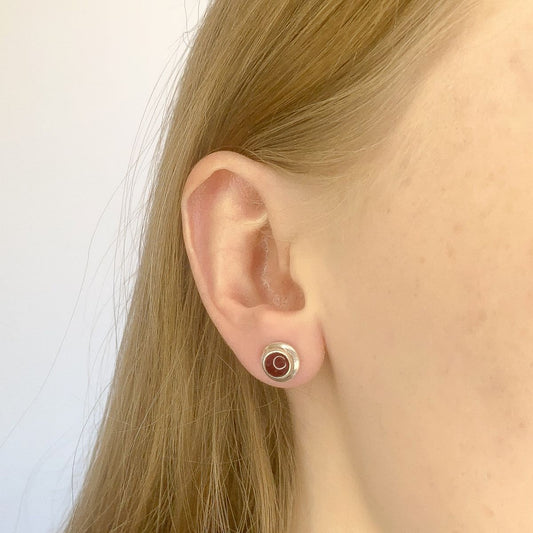 Granatas ¦ sidabriniai apvalūs auskarai su granato akmeniu