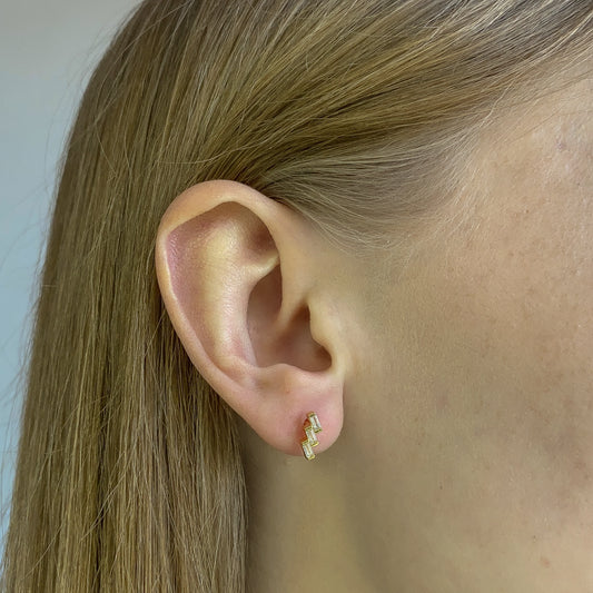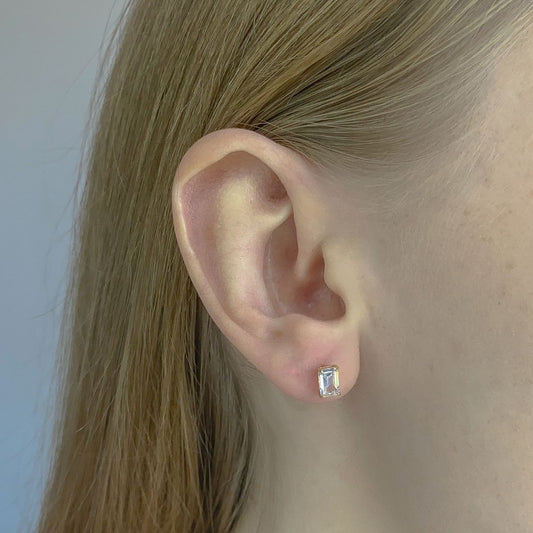 Sidabriniai auksuoti stačiakampiai vinukai su cirkoniu