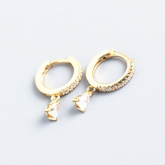Sidabriniai paauksuoti kabantys auskarai su cirkonio kristalu