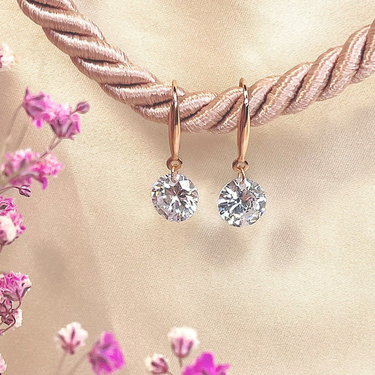 Sidabriniai paauksuoti auskarai su 7 mm cirkonio akute
