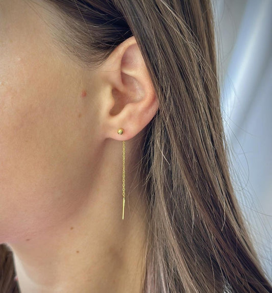 Sidabriniai auksuoti kabantys auskarai su grandinėle