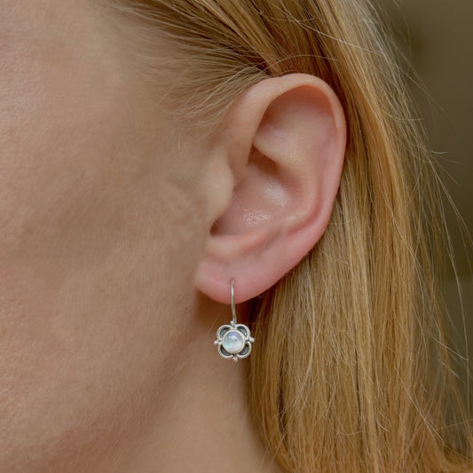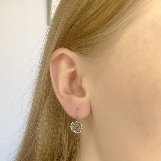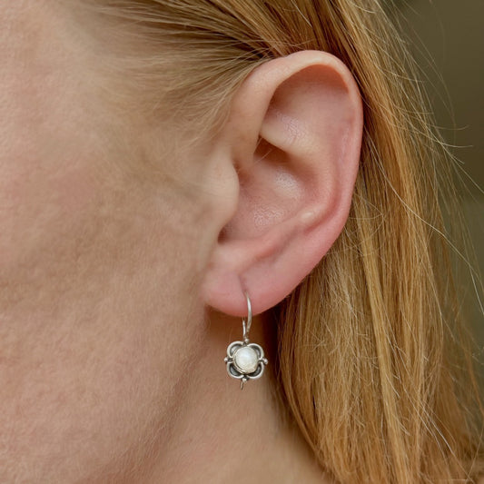 Sidabriniai auskarai "Gėlytės" su mėnulio akmeniu