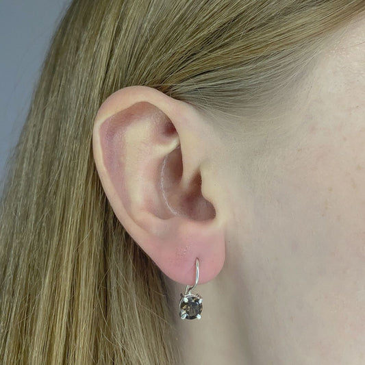 Sidabriniai apvalūs kabantys auskarai su dūminiu kvarcu