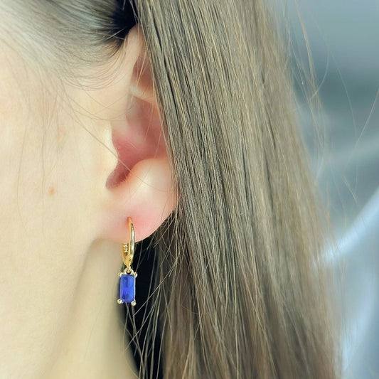 Sidabriniai auksuoti auskarai su mėlynu cirkoniu
