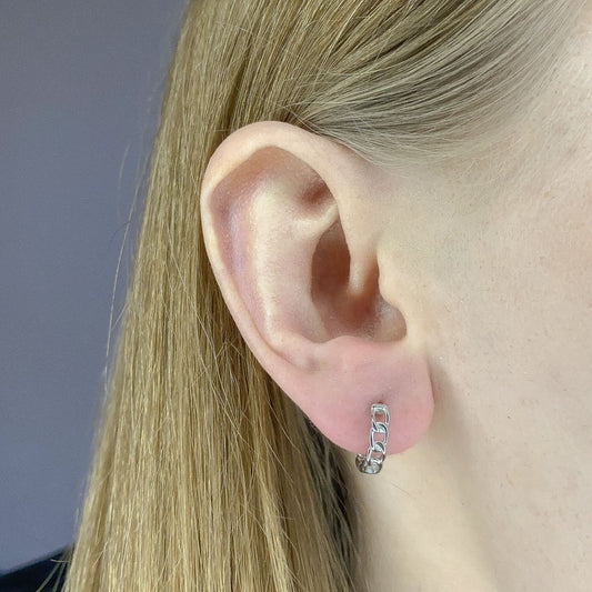 Sidabriniai rodžiuoti kabantys auskarai su grandinėle