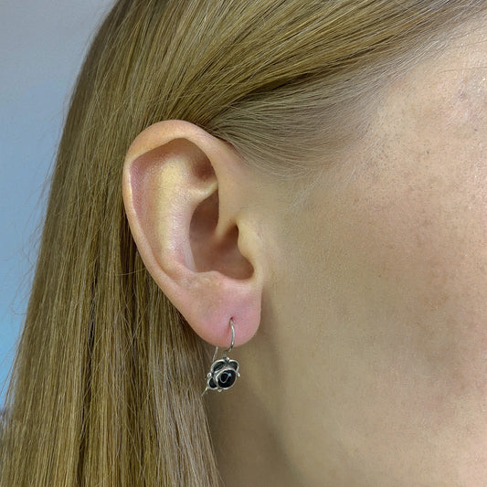 Oniksas¦ sidabriniai auskarai "Gėlytės" su oniksu