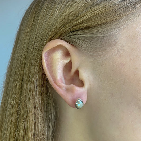 Sidabriniai apvalūs auskarai su mėnulio akmeniu