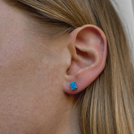 Sidabriniai rodžiuoti auskarai su ovaliu opalu