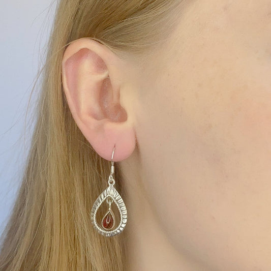 granatas ¦ sidabriniai auskarai su lašo formos granatu