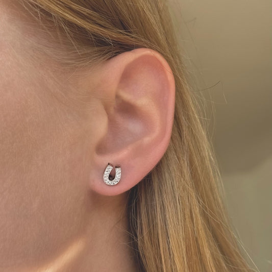 Sidabriniai rodžiuoti auskarai "Pasagėlės" su cirkoniais