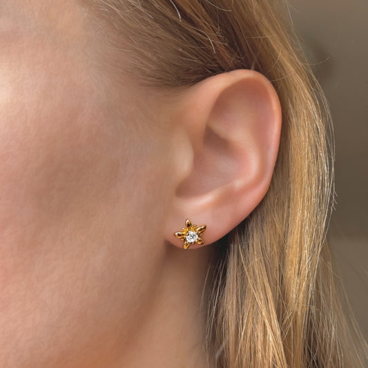 Sidabriniai auksuoti auskarai su cirkoniu "Gėlytės"