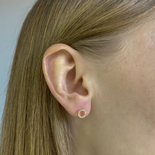Sidabriniai auksuoti apvalūs auskarai su cirkoniais