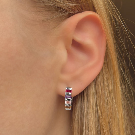 Sidabrinės rodžiuotos 1,2cm dydžio rinkutės su įvairių spalvų cirkoniais