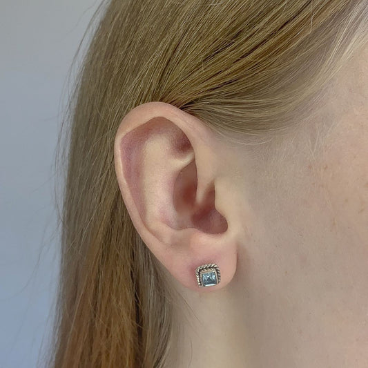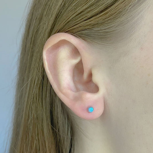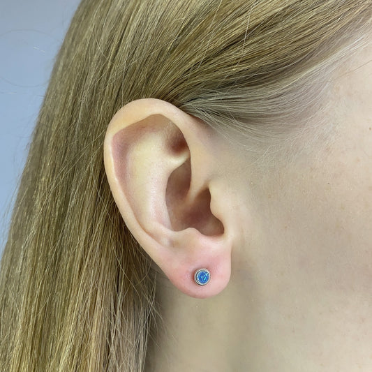 Sidabriniai rodžiuoti vinukai su žydru sintetiniu opalu