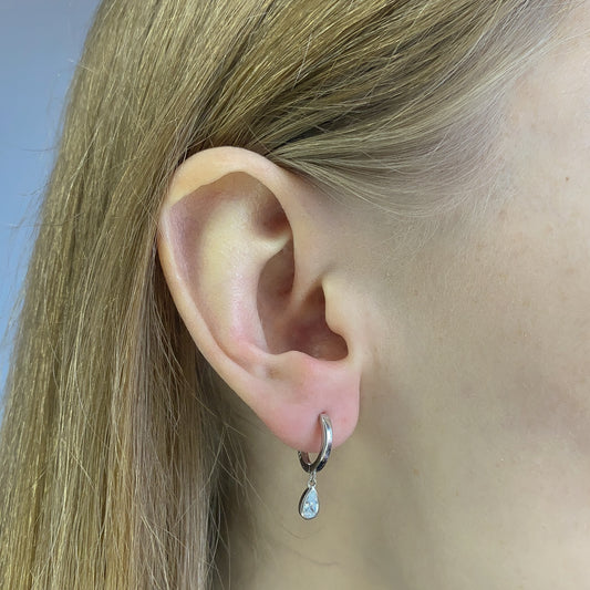 Sidabrinės rodžiuotos rinkutės su kabančiu cirkoniu