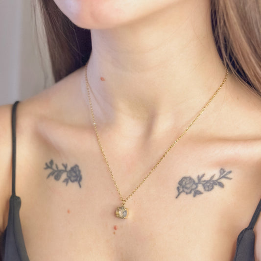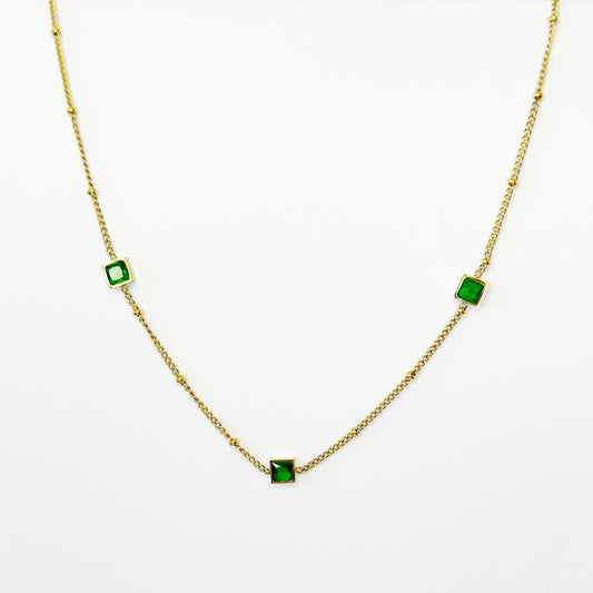 Auksuota grandinėlė su įvairių spalvų cirkoniu