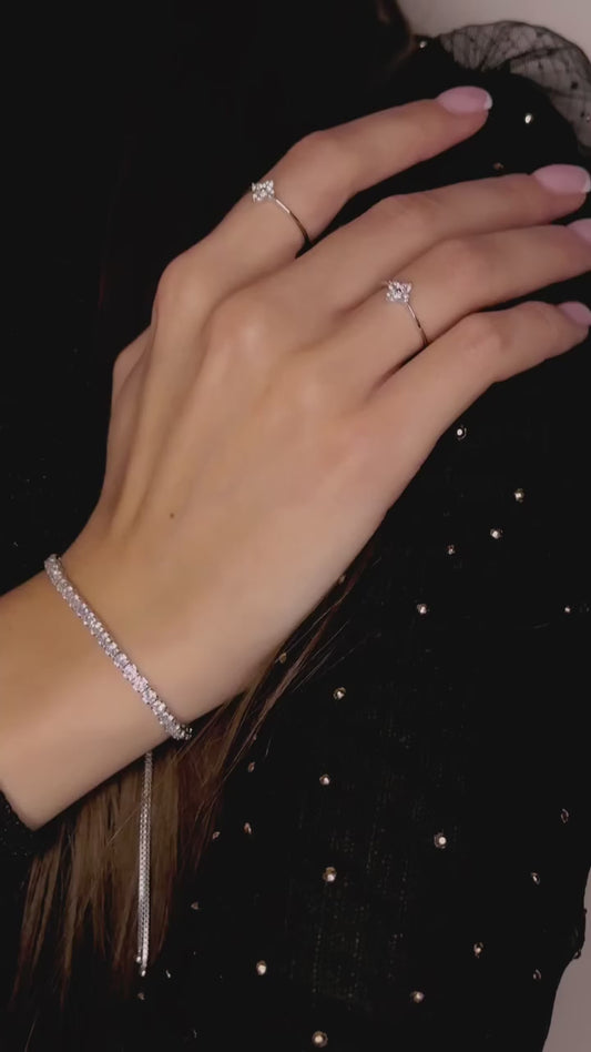 Sidabrinis reguliuojamo dydžio žiedas su blizgučiais