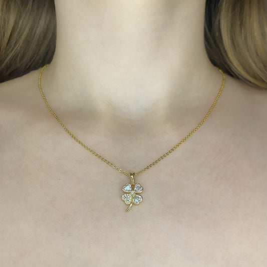Sidabrinis keturlapis dobilas su cirkoniais ir grandinėle