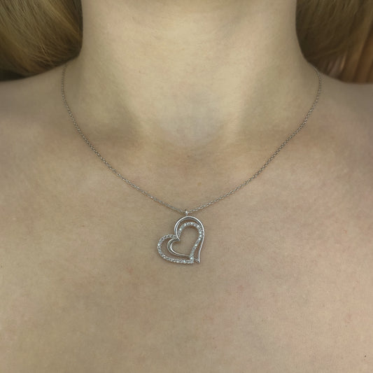 Sidabrinis rodžiuotas pakabukas širdelė su cirkoniu ir grandinėle