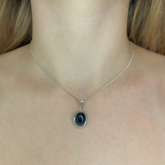 Sidabrinis pakabukas su ovaliu onikso akmeniu ir grandinėle