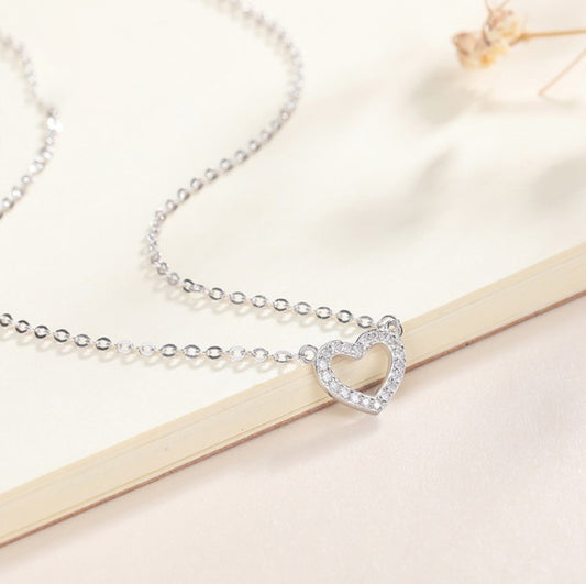 Sidabrinė rodžiuota širdelė su grandinėle ir rožiniu cirkoniu