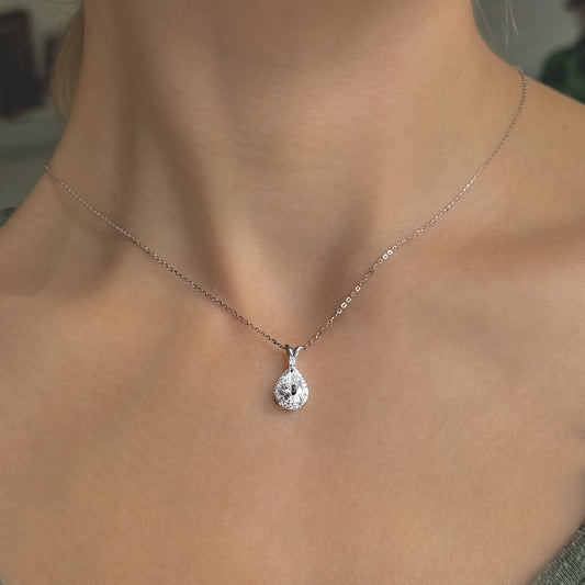 Rodžiuotas sidabrinis lašo formos pakabukas su cirkoniu ir grandinėle