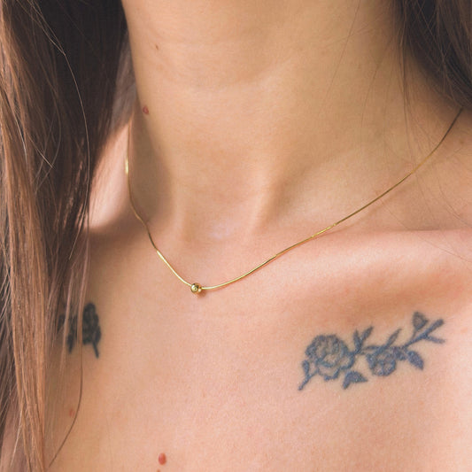 Sidabrinis auksuotas minimalistinio stiliaus burbuliukas su grandinėle