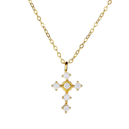 Sidabrinis auksuotas kryželis su cirkoniais ir grandinėle