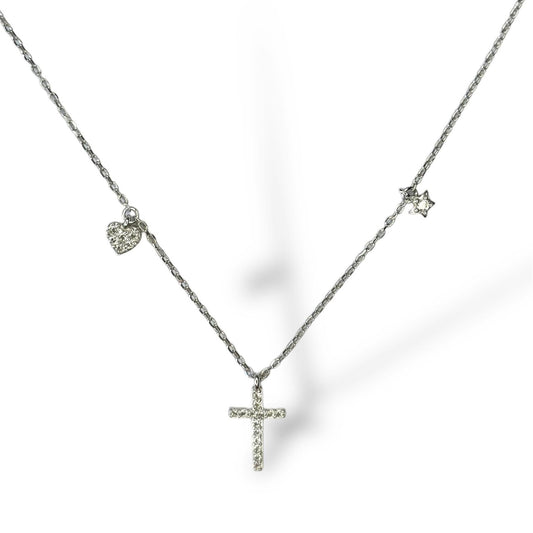 Sidabrinis rodžiuotas kryželis su cirkoniais ir grandinėle