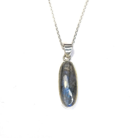 Sidabrinis pakabukas su pailgu labradoritu ir grandinėle