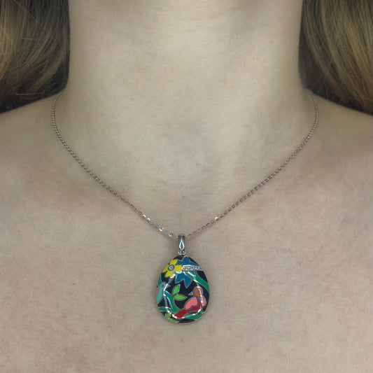 Sidabrinis auksuotas pakabukas su sintetiniu opalu ir grandinėle