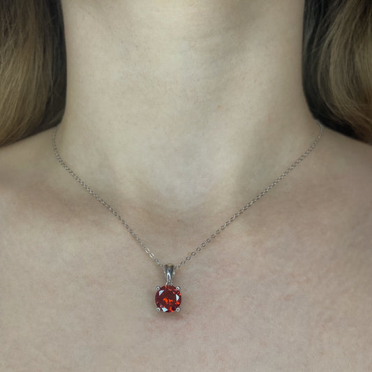 Sidabrinis pakabukas su granatu ir grandinėle