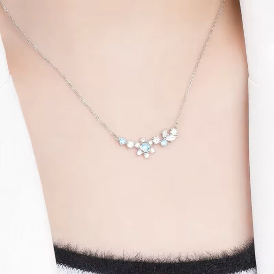 Sidabrinis rodžiuotas pakabukas "Gėlytė" su žydrais cirkoniais ir grandinėle