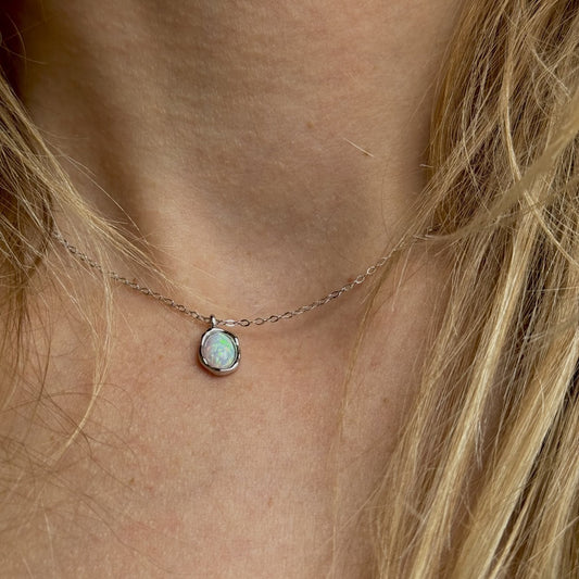 Sidabrinis rodžiuotas pakabukas su sintetiniu opalu ir grandinėle