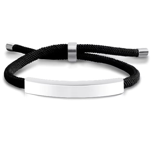 Juodo siūlo apyrankė su plieno detale