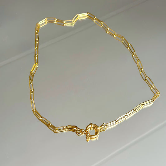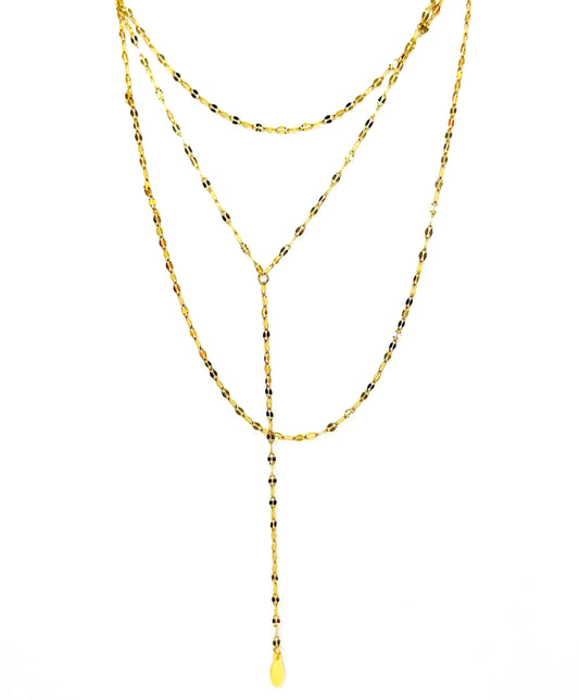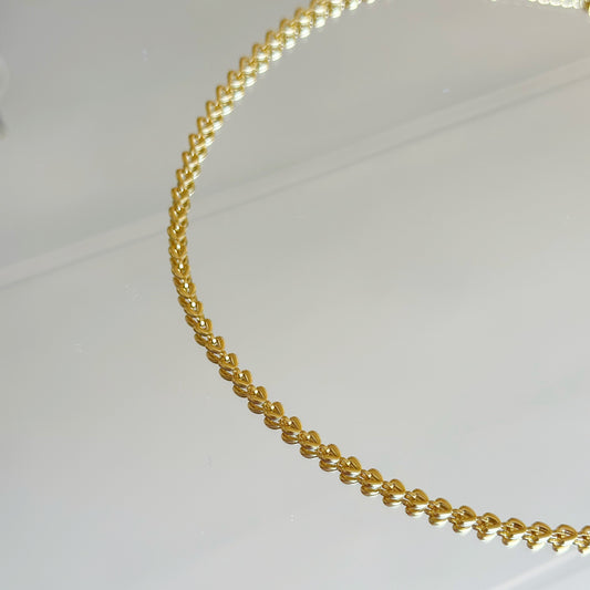 Auksuota triguba koljė su skirtingų pynimų grandinėlėmis ir širdele