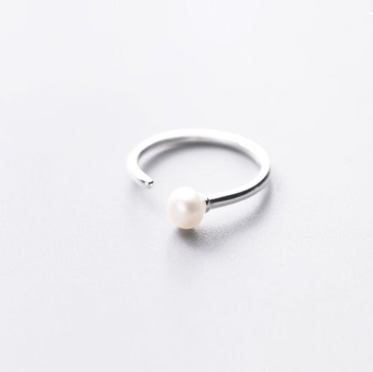 Reguliuojamo dydžio sidabrinis žiedas su perlu