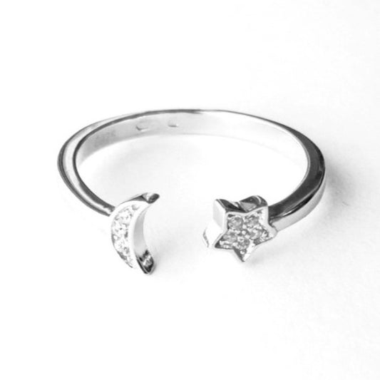 Sidabrinis žiedas su žvaigždute ir mėnuliu