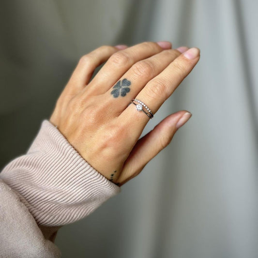 Sidabrinis rodžiuotas žiedas "Keturlapis dobilas" su cirkoniu